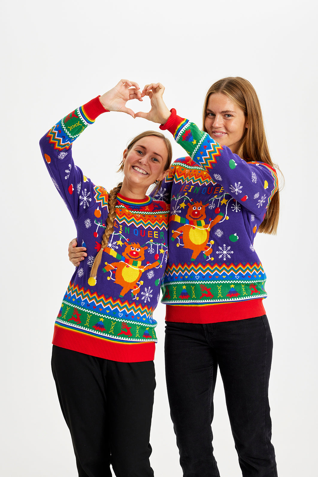 De kwaliteit van onze truien voor jouw kerstfeest vinden we heel erg belangrijk. Wij kiezen voor kwaliteitsmaterialen en stellen heel hoge eisen aan de productie. Daarnaast maken wij alle ontwerpen zelf. Helaas lukt het ons nog niet om de truien zelf te breien en dat is waarschijnlijk maar goed ook.